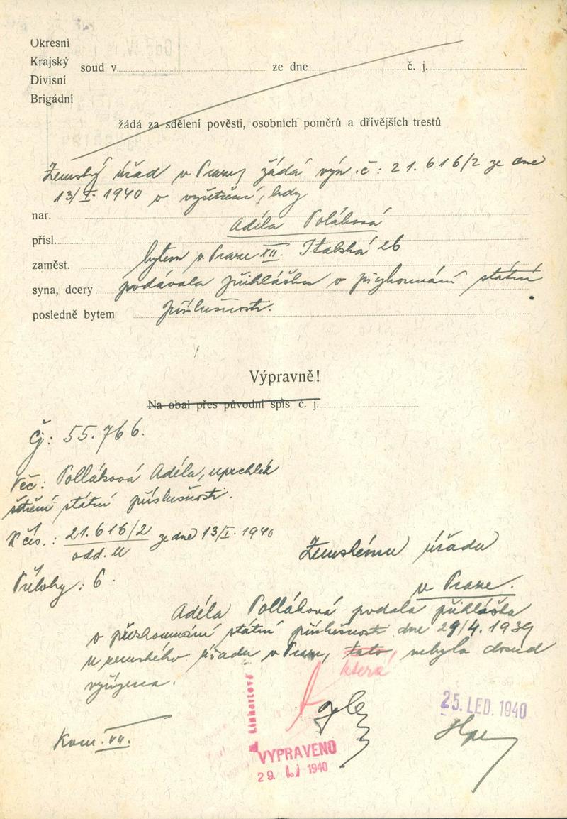 National archives Prague > Police Directorate Prague > 1931-1940 > P > Pollaková Adéla