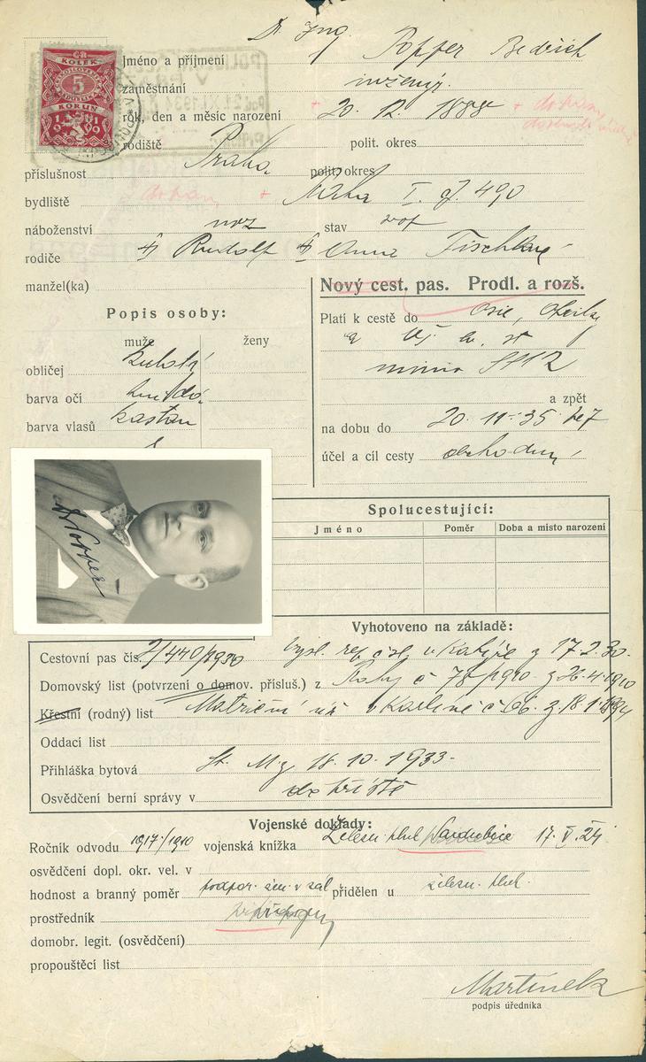 National archives Prague > Police Directorate Prague > 1931-1940 > P > Popper Bedřich