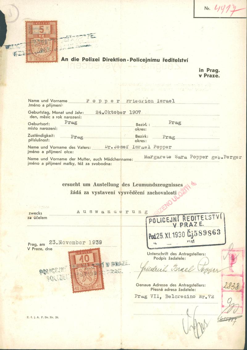 National archives Prague > Police Directorate Prague > 1931-1940 > P > Popper Bedřich
