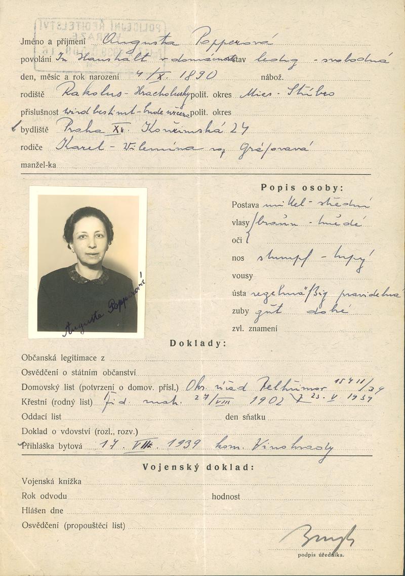 National archives Prague > Police Directorate Prague > 1931-1940 > P > Popperová Augusta