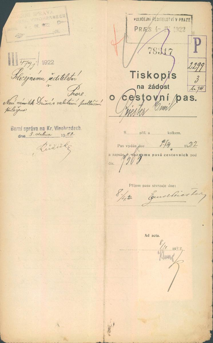 National archives Prague > Police Directorate Prague > 1931-1940 > P > Priester Emil
