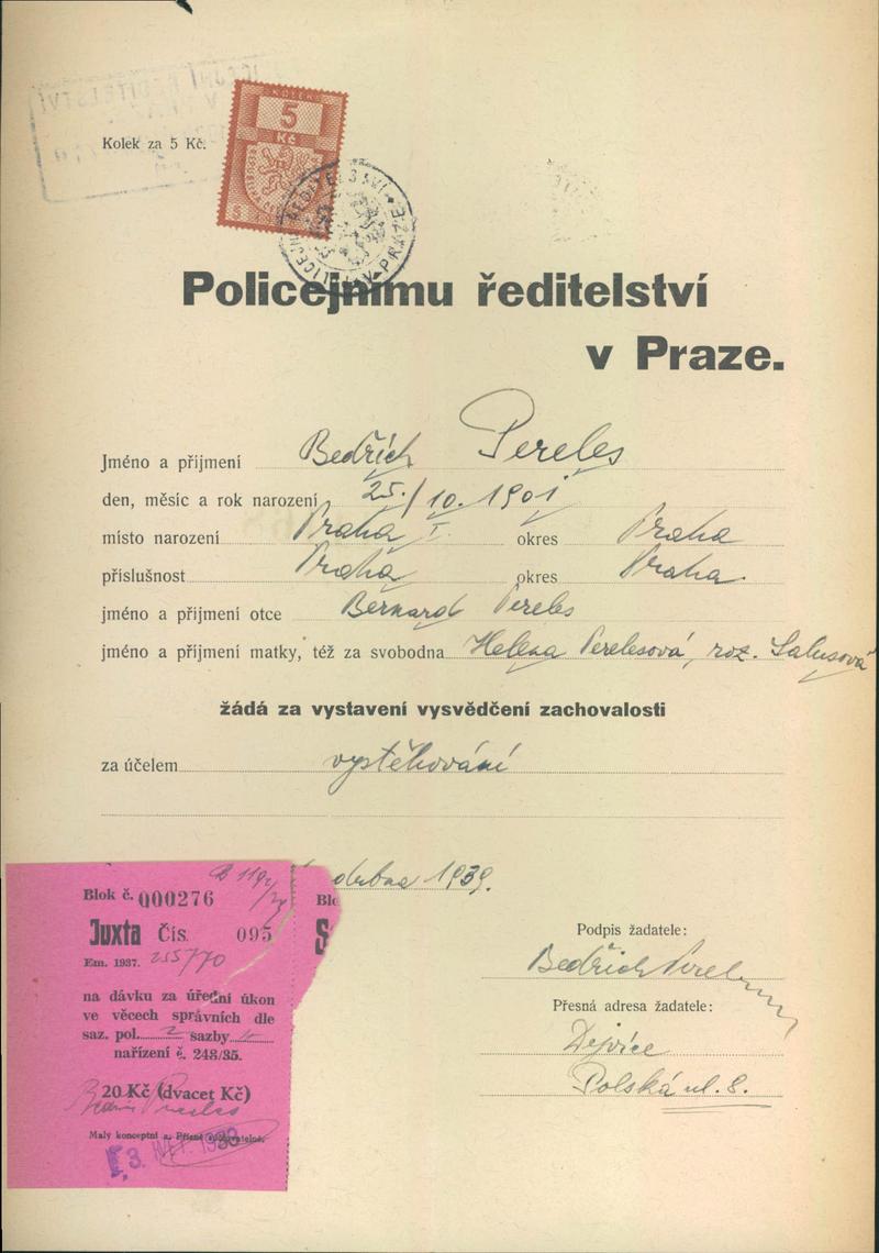 National archives Prague > Police Directorate Prague > 1941-1950 > P > Pereles Bedřich