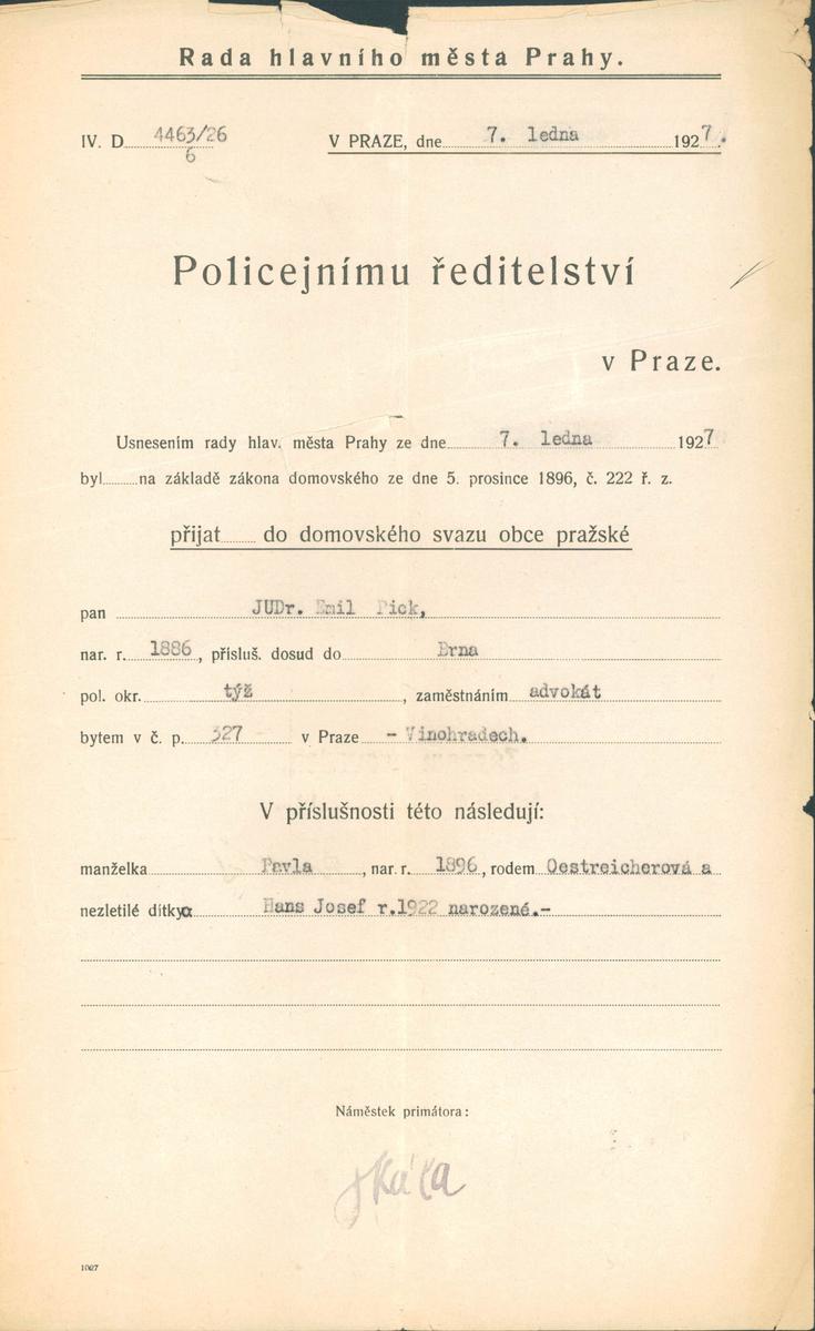 National archives Prague > Police Directorate Prague > 1941-1950 > P > Pick Emil