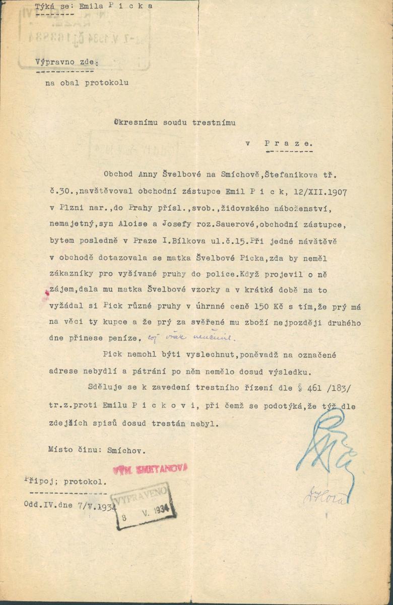 National archives Prague > Police Directorate Prague > 1941-1950 > P > Pick Emil