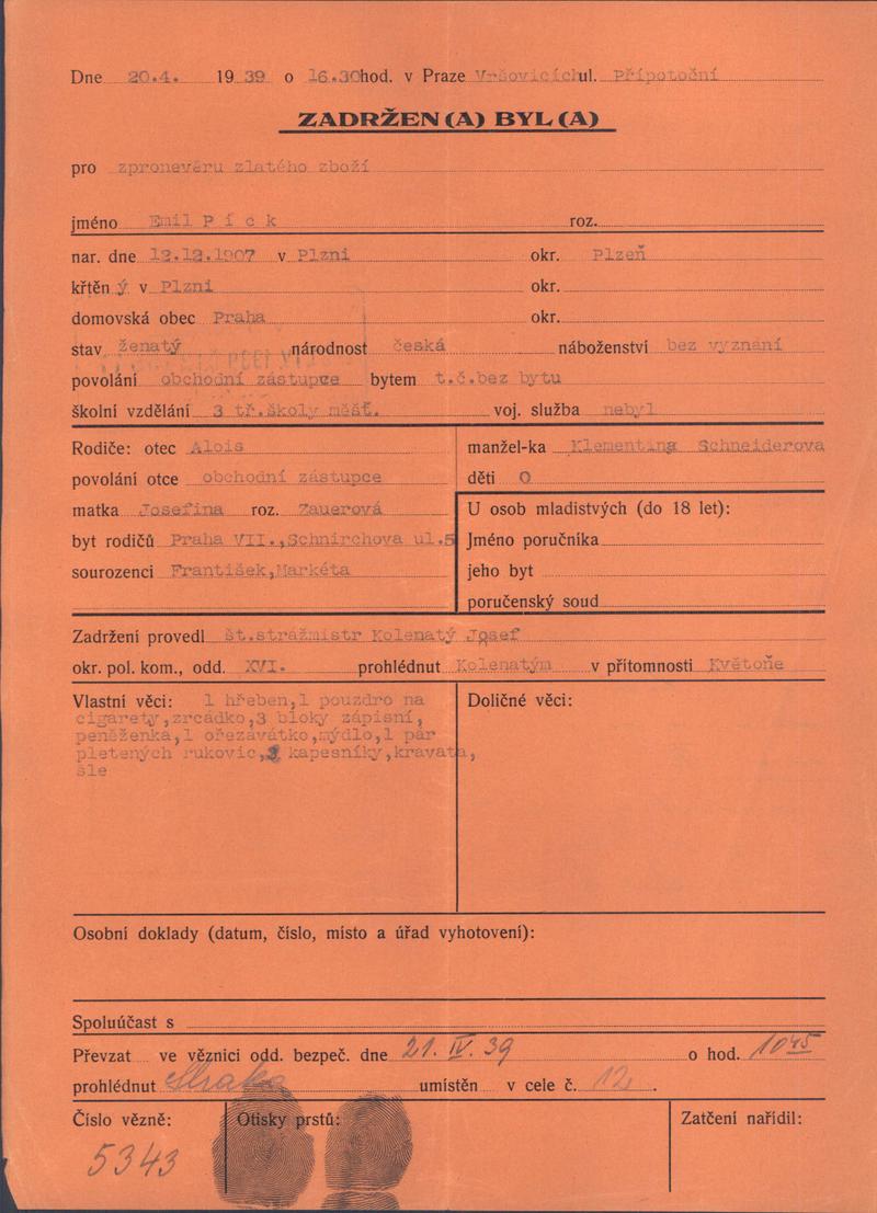 National archives Prague > Police Directorate Prague > 1941-1950 > P > Pick Emil