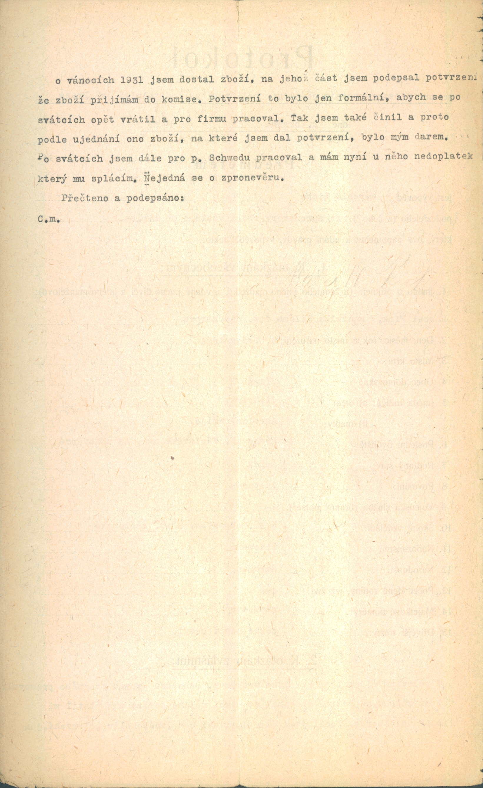 Pick Marcel: Protokol o výslechu