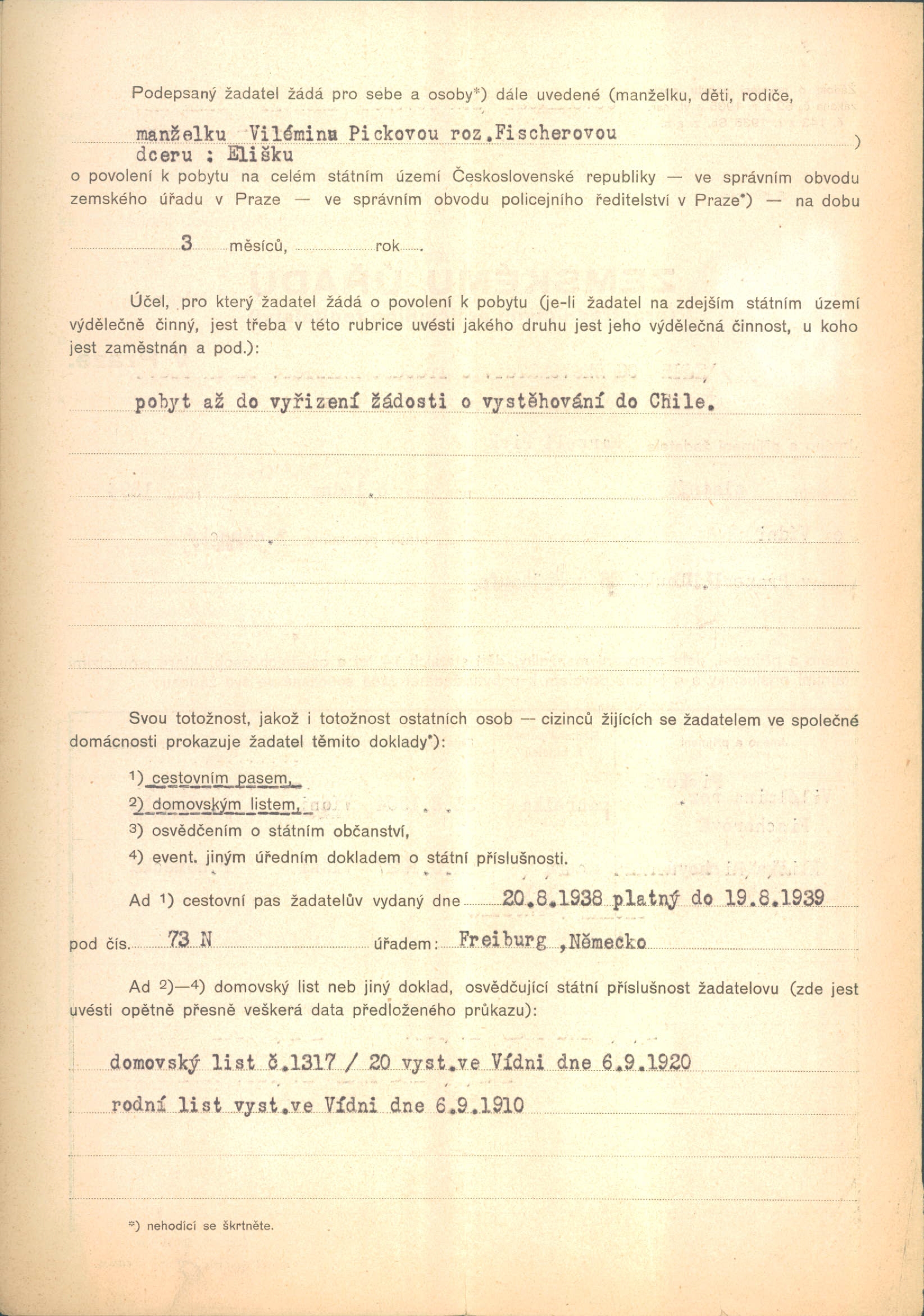 Pick Marcel: Žádost o povolení pobytu