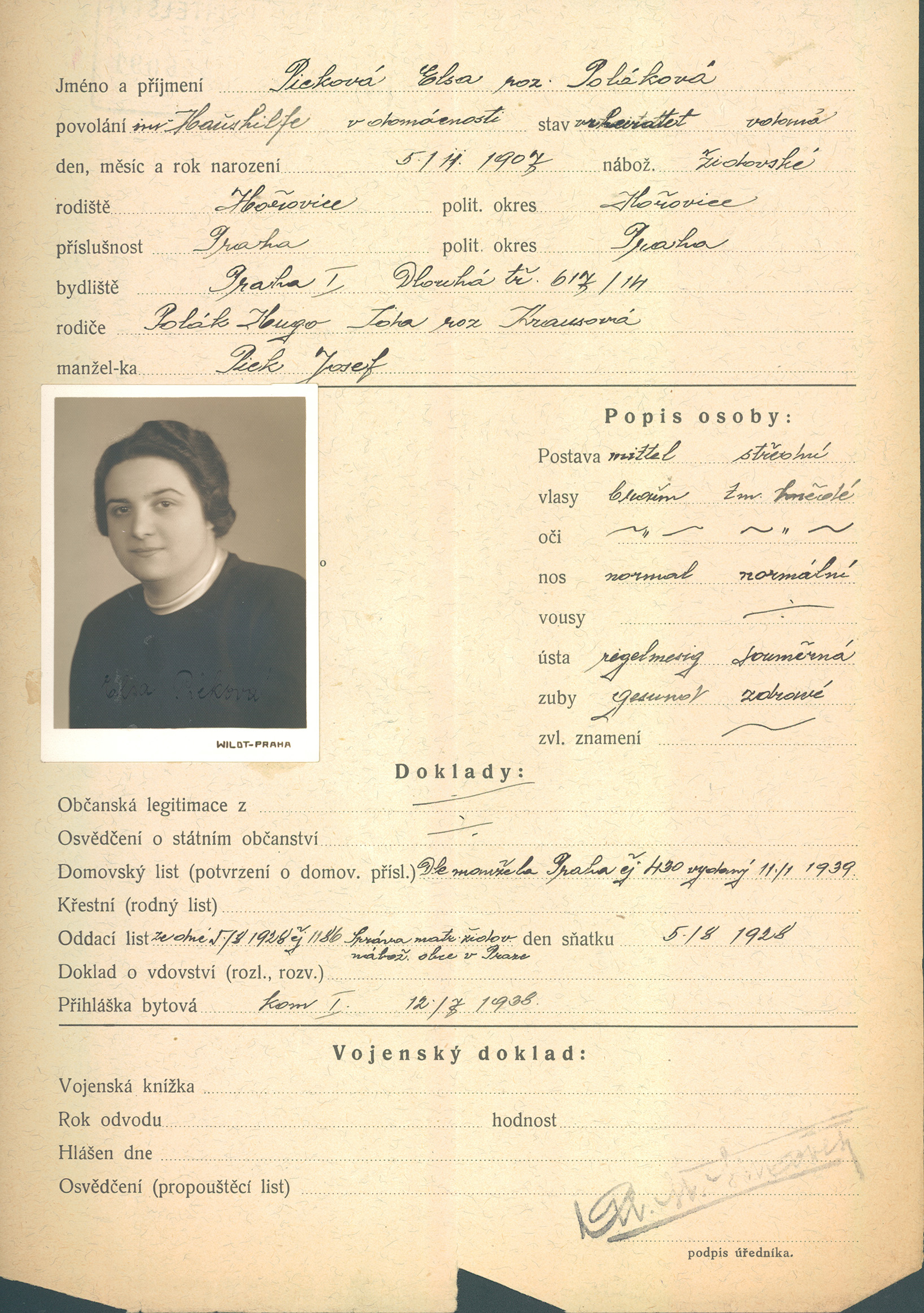Picková Elsa: Žádost o vydání občanské legitimace