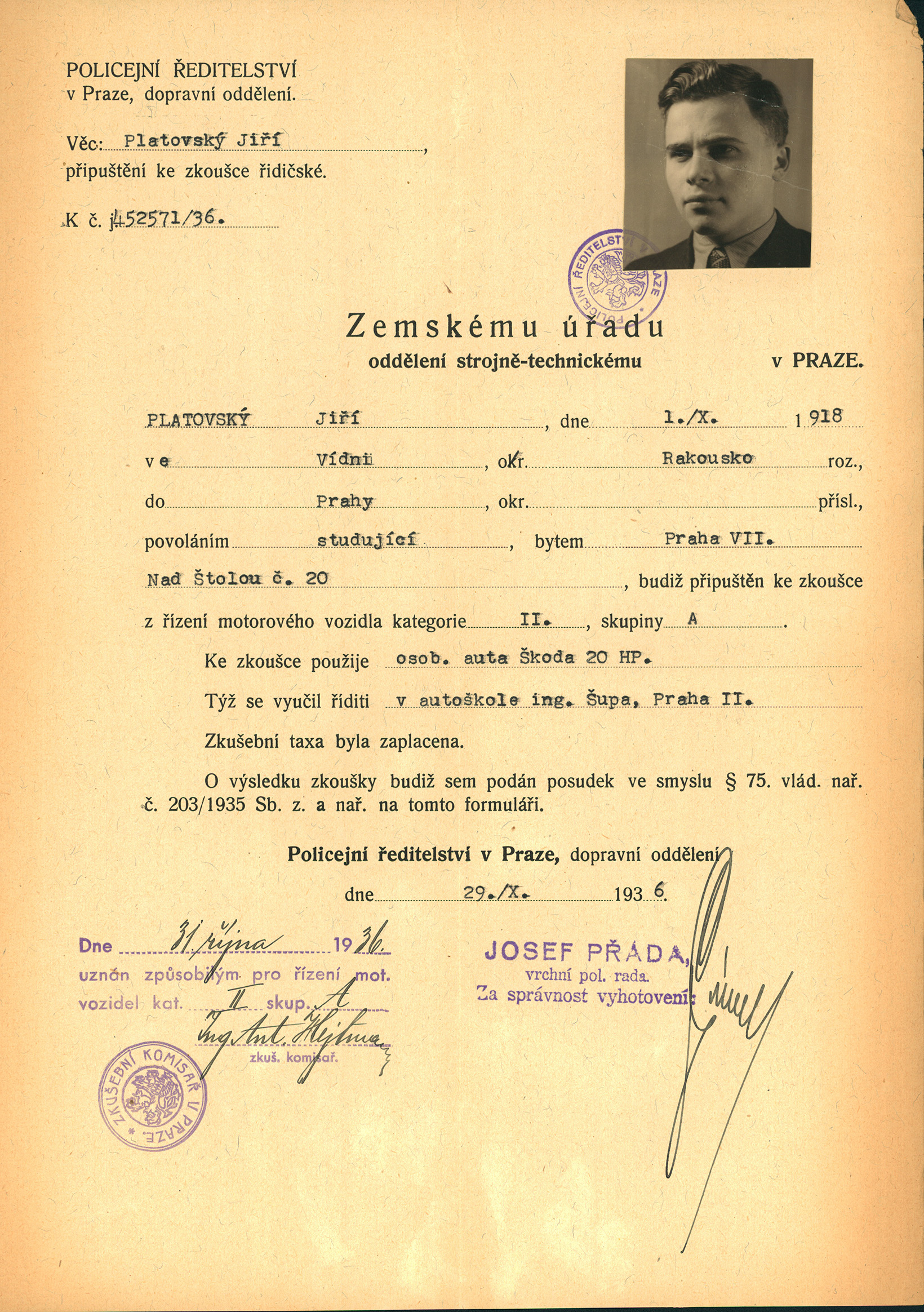 Platovský Jiří: Připuštění k řidičské zkoušce