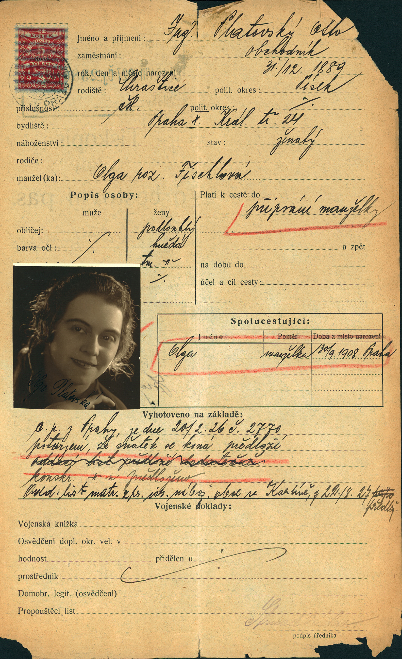 Platovský Otto: Žádost o připsání manželky do cestovního pasu