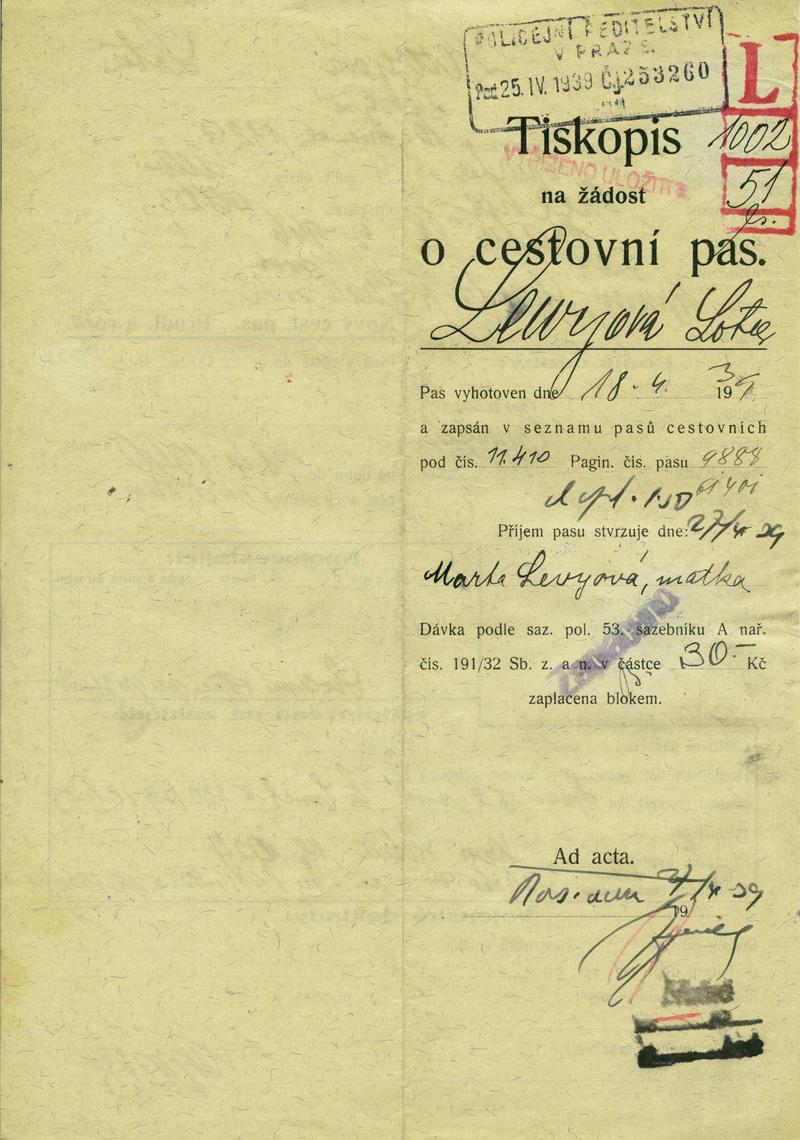 National archives Prague > Police Directorate Prague > 1931-1940 > L > Levyová Lotte Renné