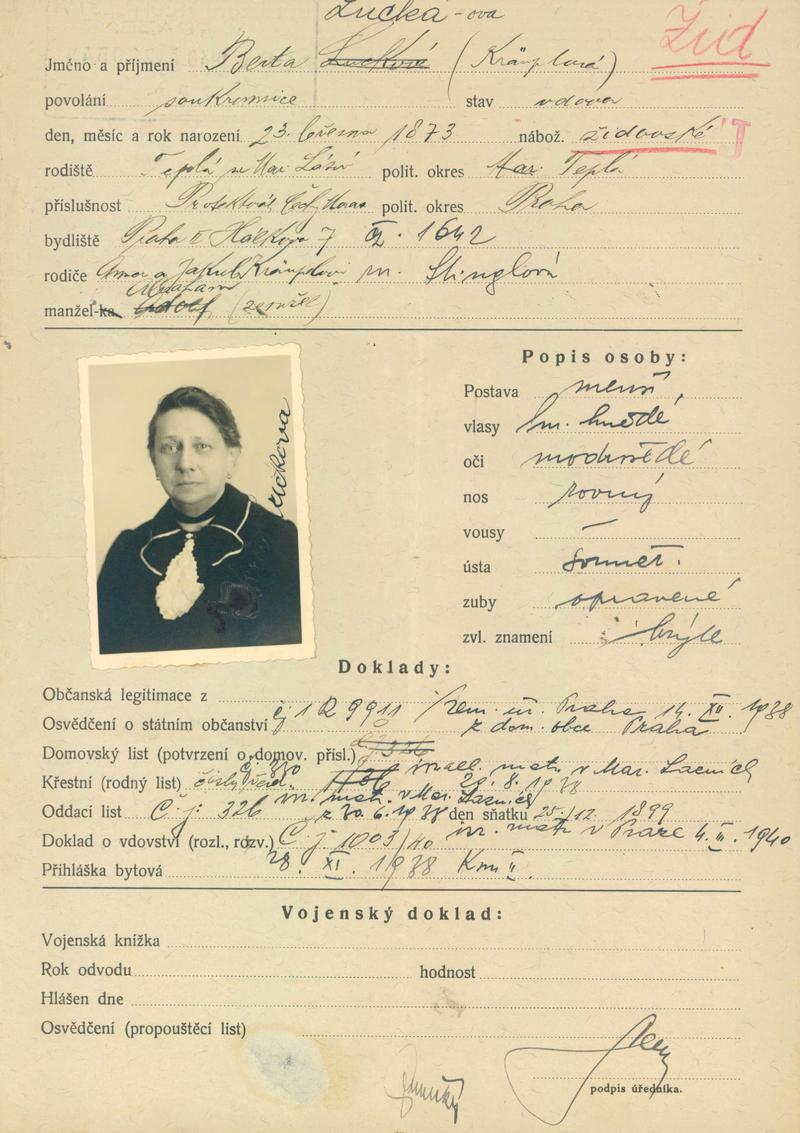 This database contains the names and fates of those who were deported from the territory of today’s Czech Republic, be it their homeland or may they have been deported to the Theresienstadt ghetto before from different european countries. Further, it contains basic information on those men, women and children, most of whom were Roma or Sinti, who died as prisoners of the so-called „Gypsy camp I“ Lety u Písku.