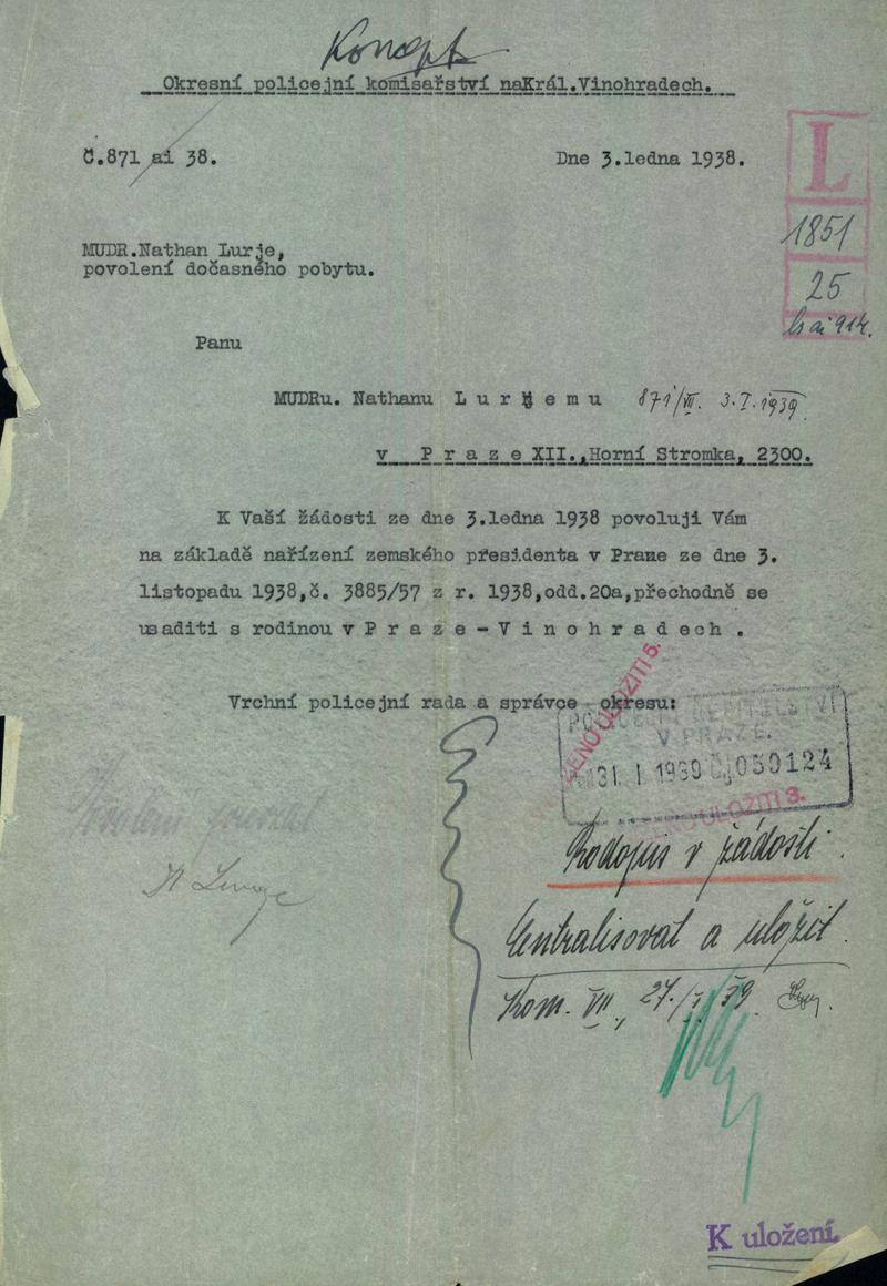 National archives Prague > Police Directorate Prague > 1931-1940 > L > Lurje Nathan