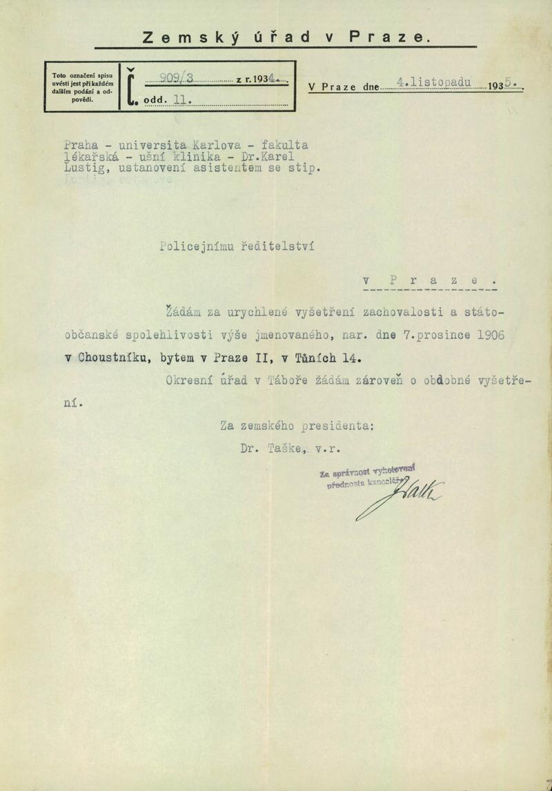 National archives Prague > Police Directorate Prague > 1931-1940 > L > Lustig Karel
