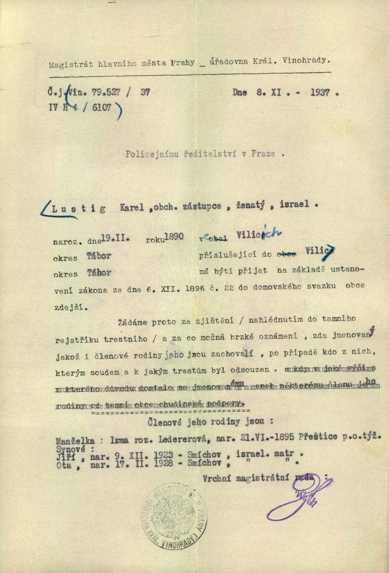 National archives Prague > Police Directorate Prague > 1931-1940 > L > Lustig Karel