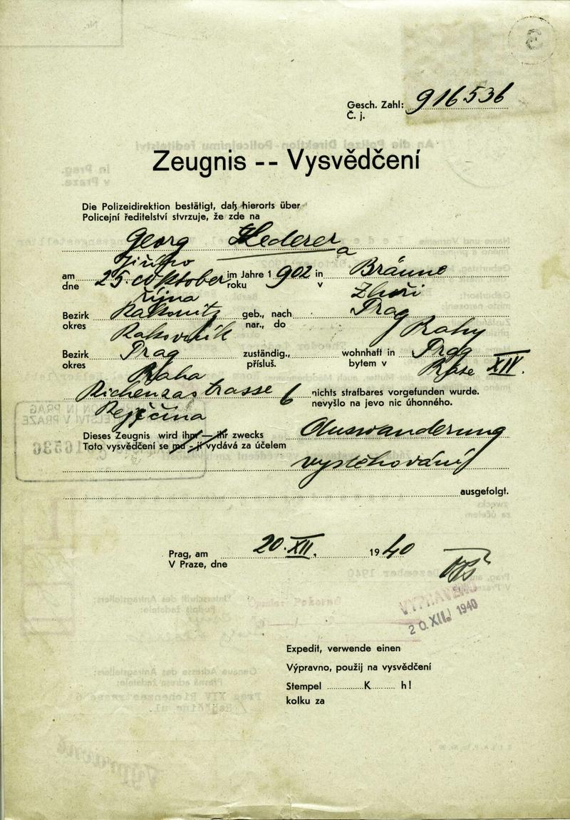 National archives Prague > Police Directorate Prague > 1931-1940 > L > Lederer Jiří