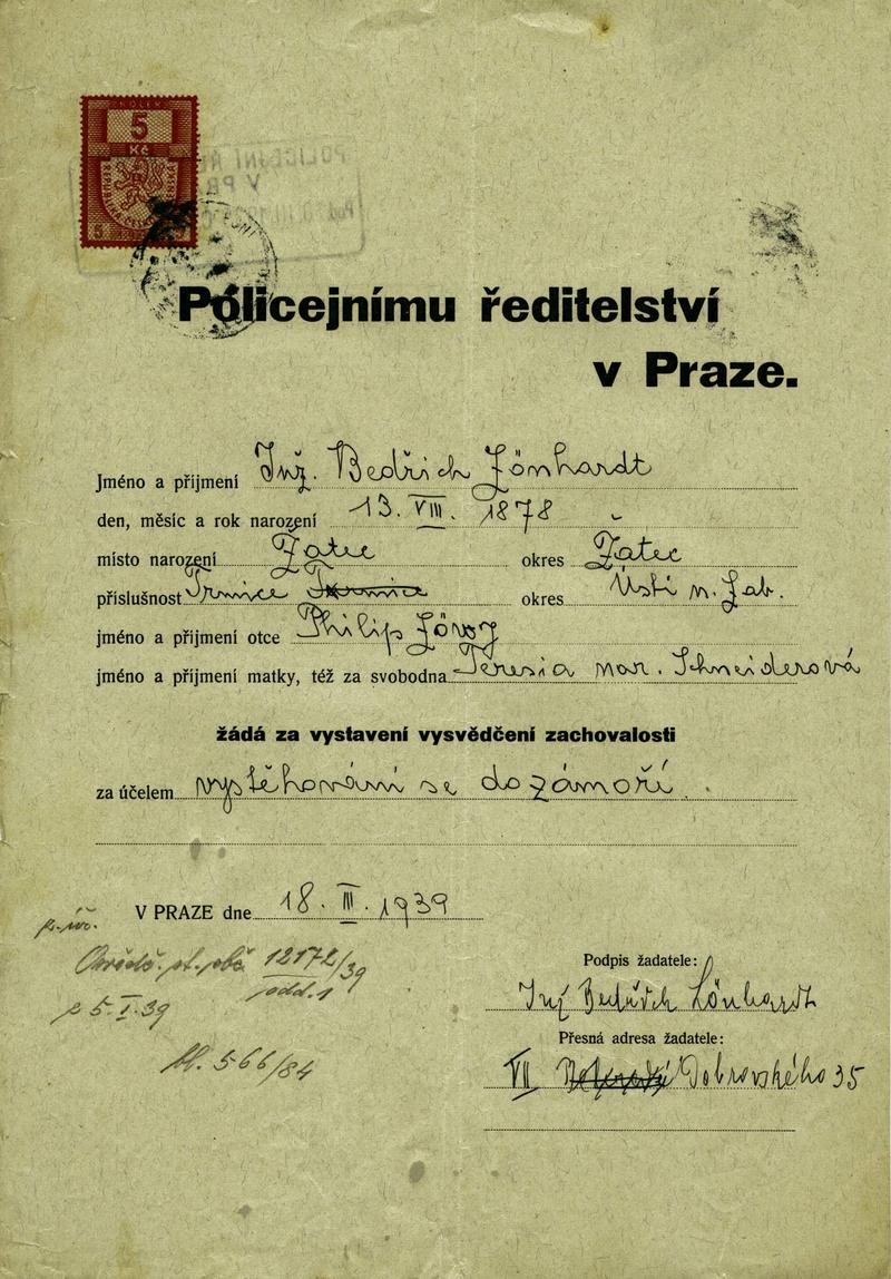 National archives Prague > Police Directorate Prague > 1931-1940 > L > Lönhardt Bedřich