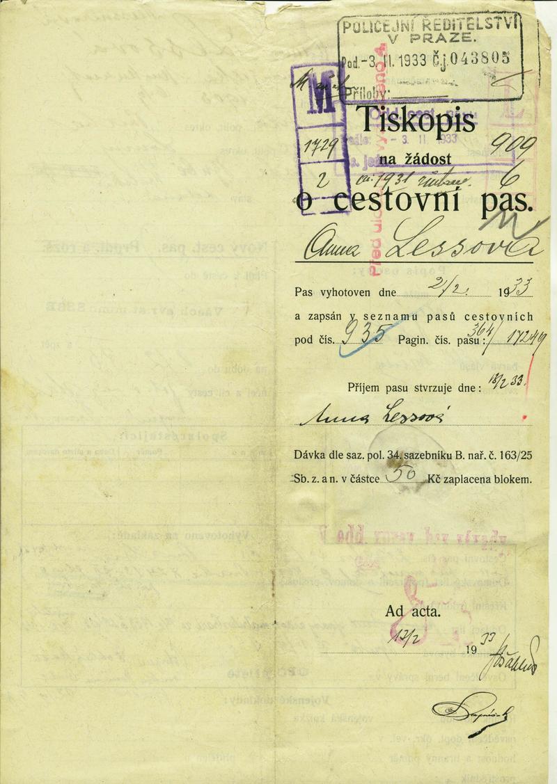 National archives Prague > Police Directorate Prague > 1931-1940 > L > Lessová Anna