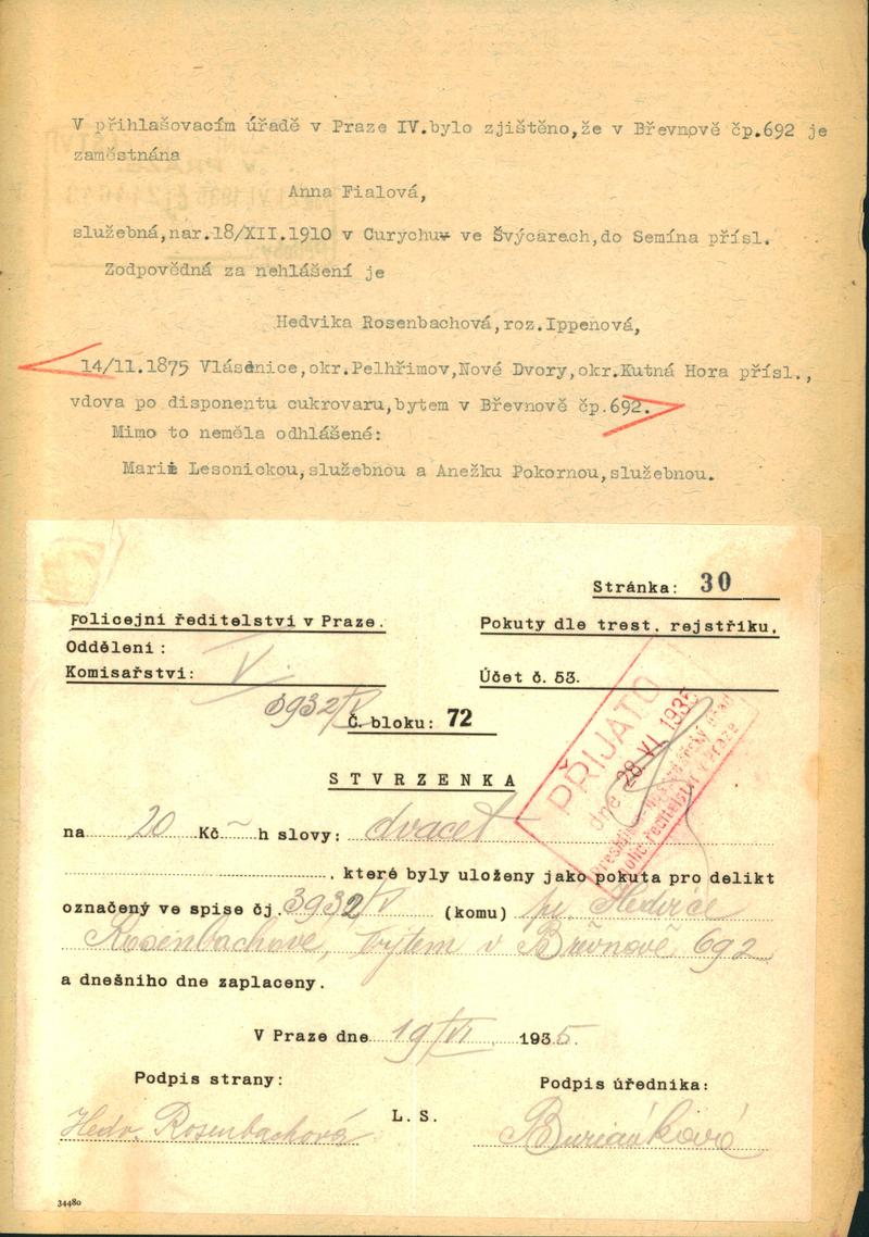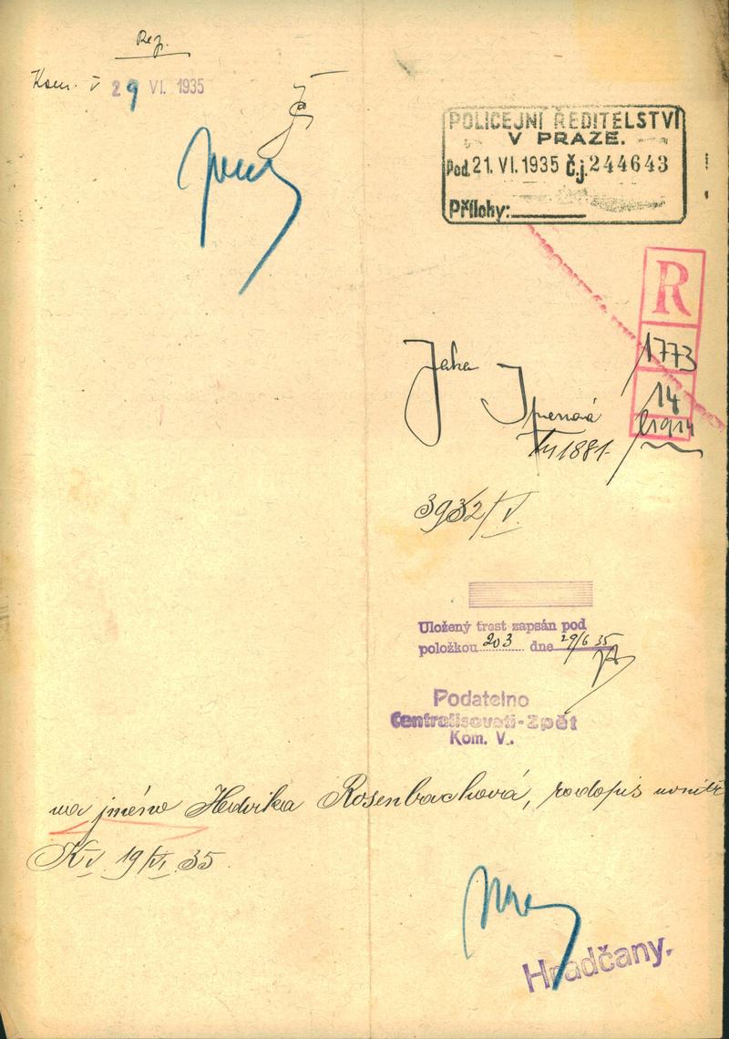 National archives Prague > Police Directorate Prague > 1931-1940 > R > Rosenbachová Hedvika