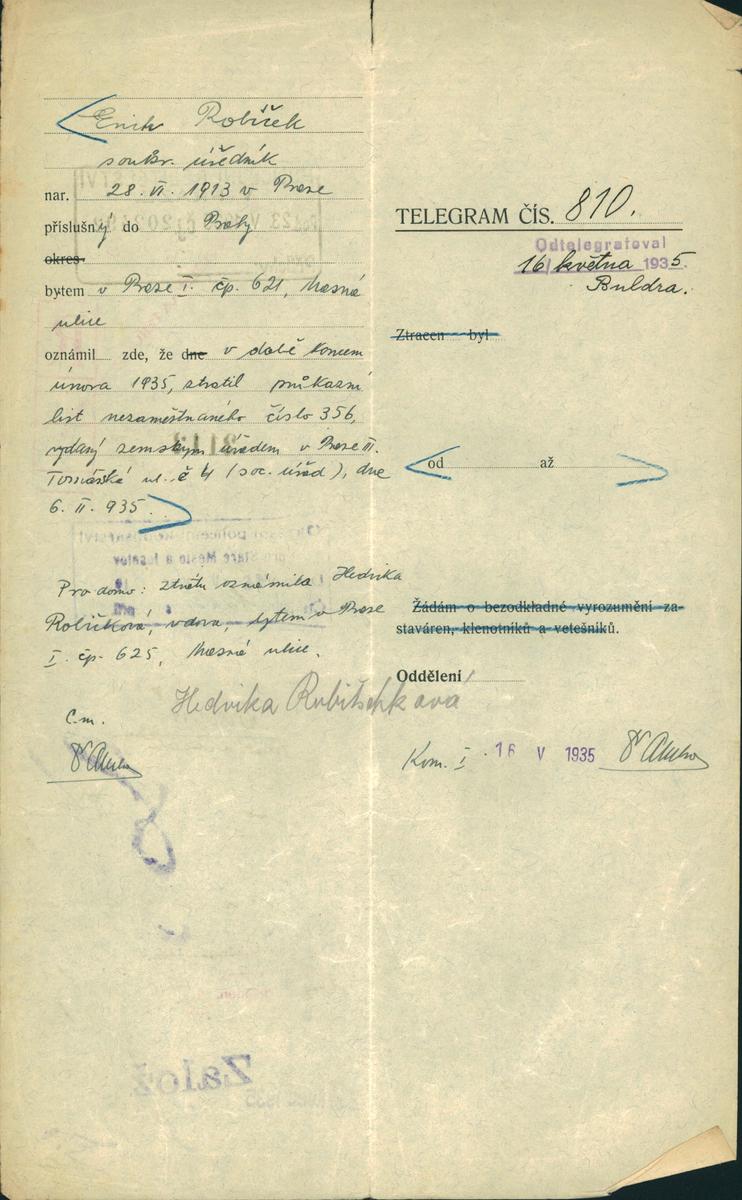 Robitschek Erich: NEZPRACOVÁNO