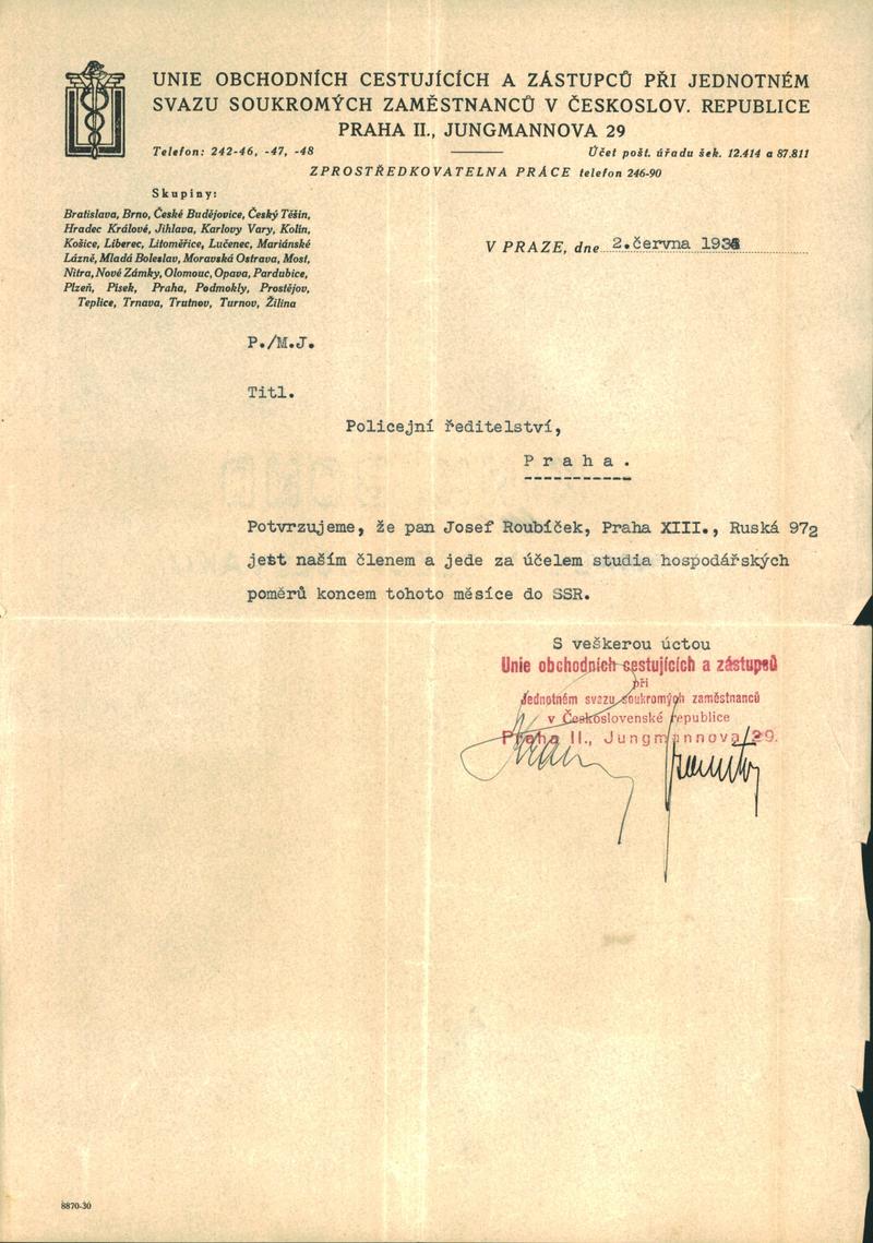 National archives Prague > Police Directorate Prague > 1931-1940 > R > Roubiček Josef