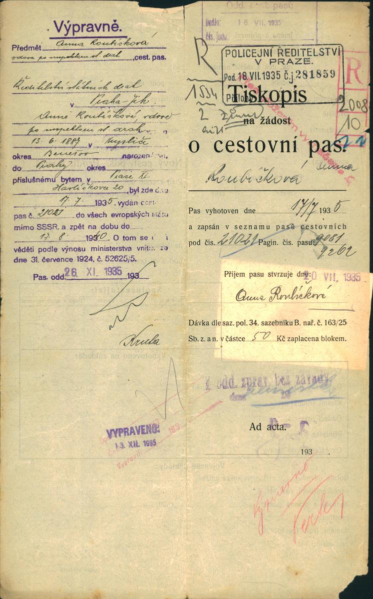 National archives Prague > Police Directorate Prague > 1931-1940 > R > Roubičková Anna