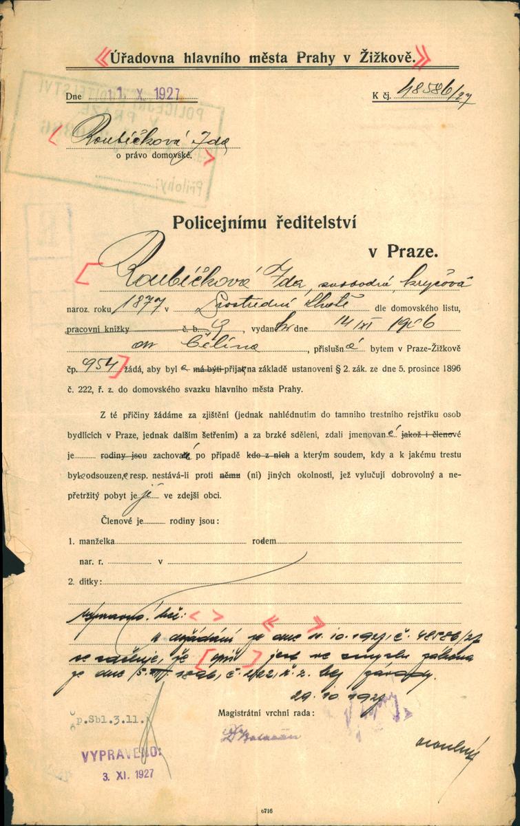 National archives Prague > Police Directorate Prague > 1931-1940 > R > Roubičková Ida