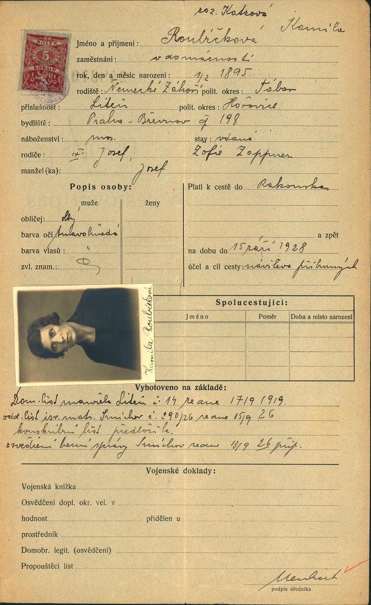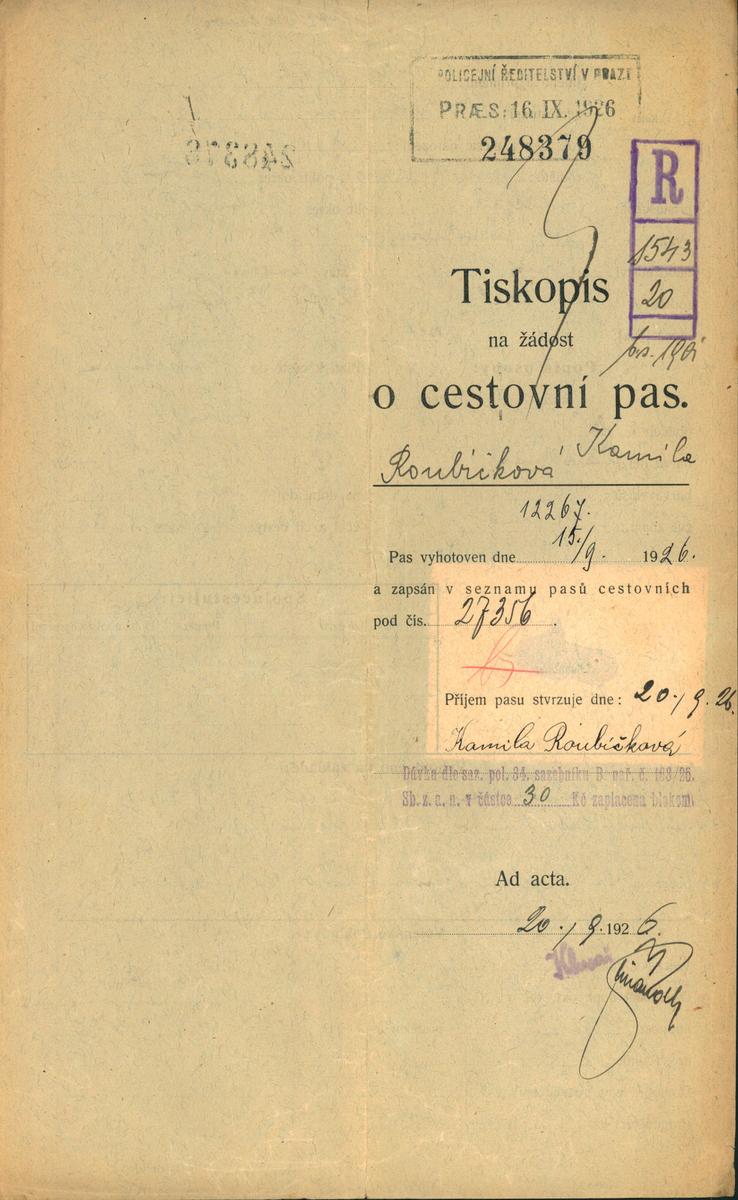 National archives Prague > Police Directorate Prague > 1931-1940 > R > Roubičková Kamila