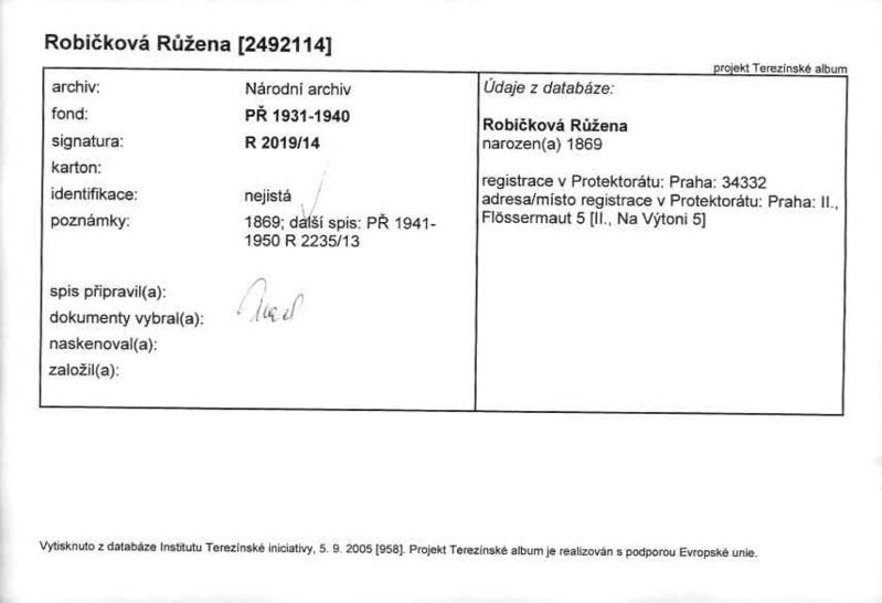 This database contains the names and fates of those who were deported from the territory of today’s Czech Republic, be it their homeland or may they have been deported to the Theresienstadt ghetto before from different european countries. Further, it contains basic information on those men, women and children, most of whom were Roma or Sinti, who died as prisoners of the so-called „Gypsy camp I“ Lety u Písku.