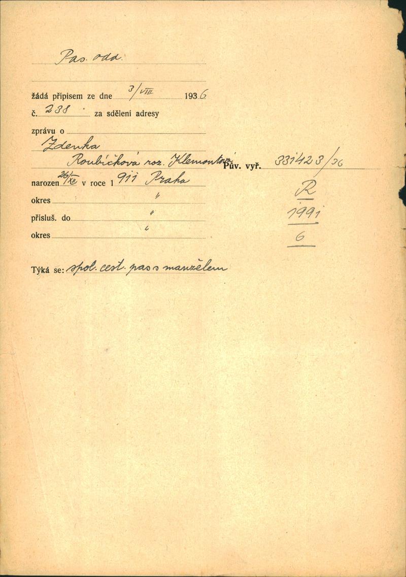 National archives Prague > Police Directorate Prague > 1931-1940 > R > Roubičková Zděnka