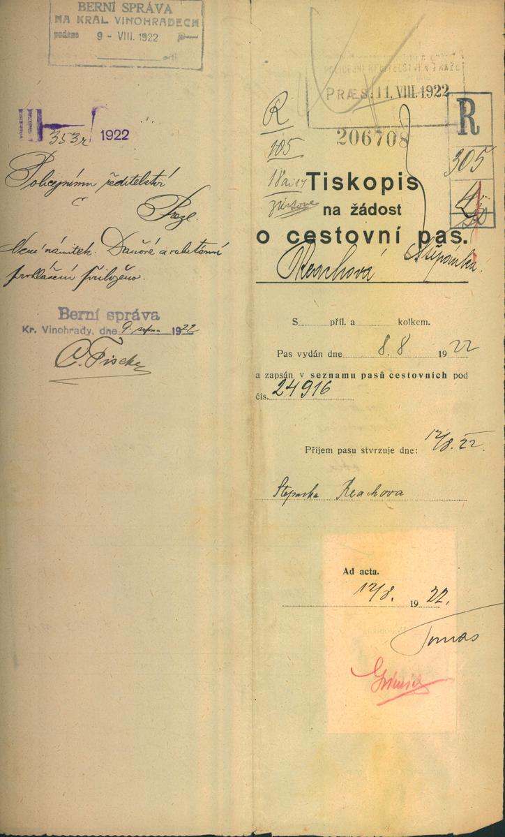 National archives Prague > Police Directorate Prague > 1931-1940 > R > Reachová Štěpánka