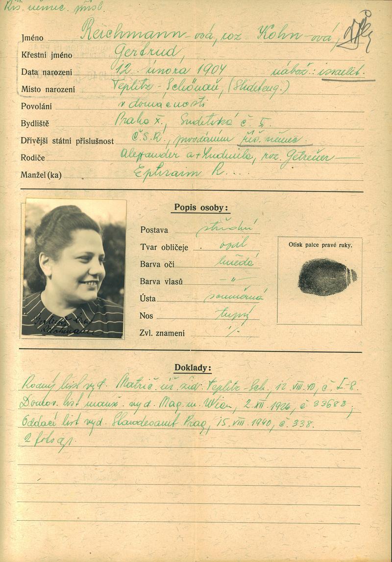 Reichmannová Gertruda: NEZPRACOVÁNO