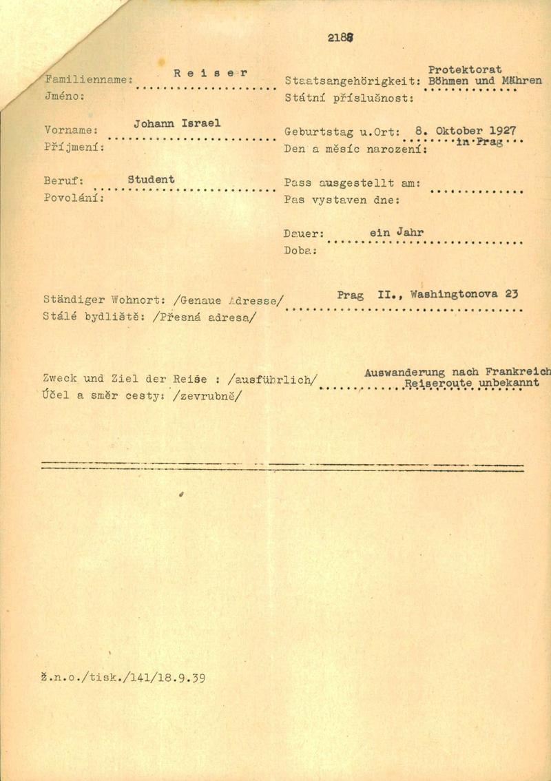 Reiser Johann: NEZPRACOVÁNO