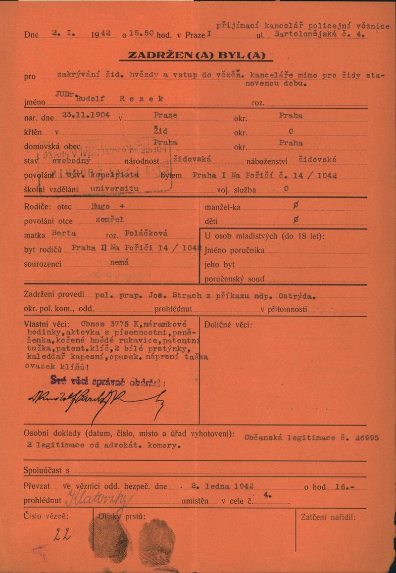 National archives Prague > Police Directorate Prague > 1941-1950 > R > Rezek Rudolf