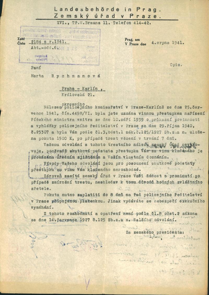 National archives Prague > Police Directorate Prague > 1941-1950 > R > Rychmannová Marta
