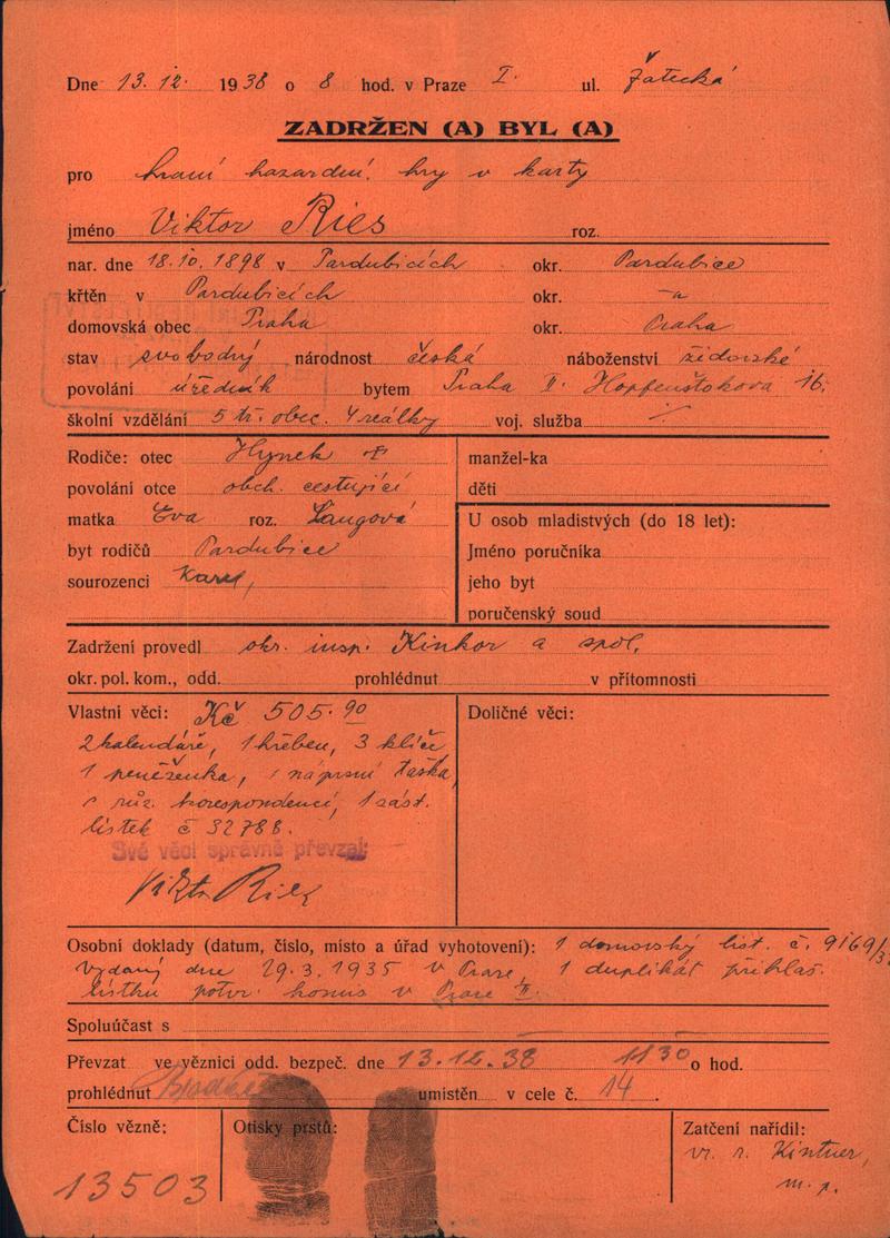 National archives Prague > Police Directorate Prague > 1941-1950 > R > Ries Viktor
