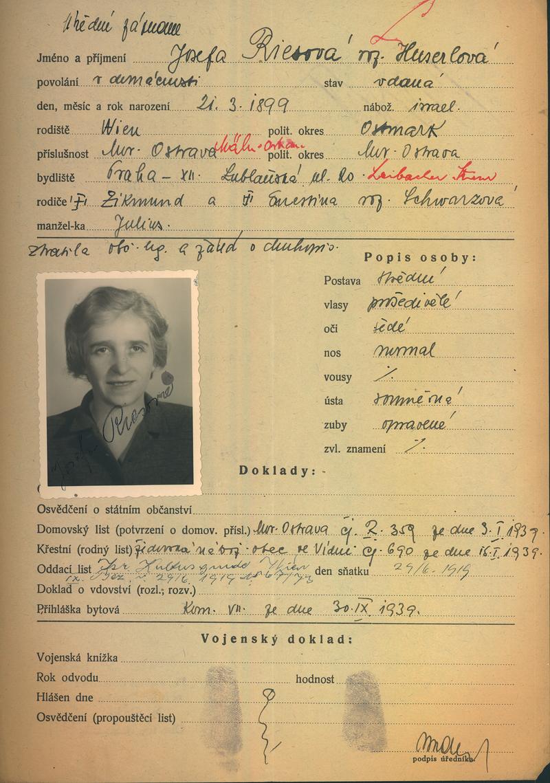 National archives Prague > Police Directorate Prague > 1941-1950 > R > Riesová Josefina
