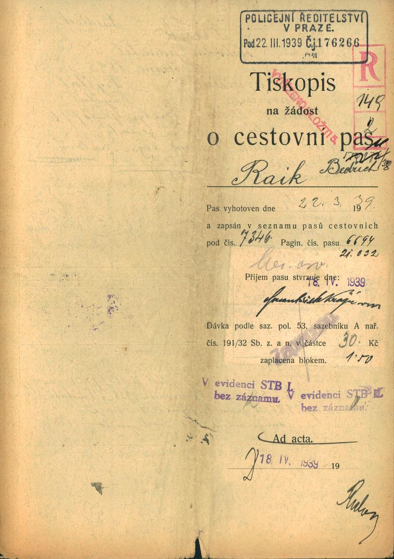 National archives Prague > Police Directorate Prague > 1941-1950 > R > Reik Bedřich