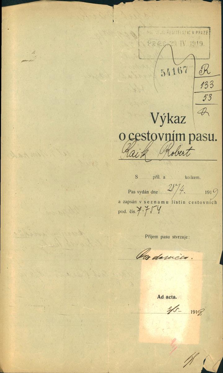 National archives Prague > Police Directorate Prague > 1941-1950 > R > Raik Robert