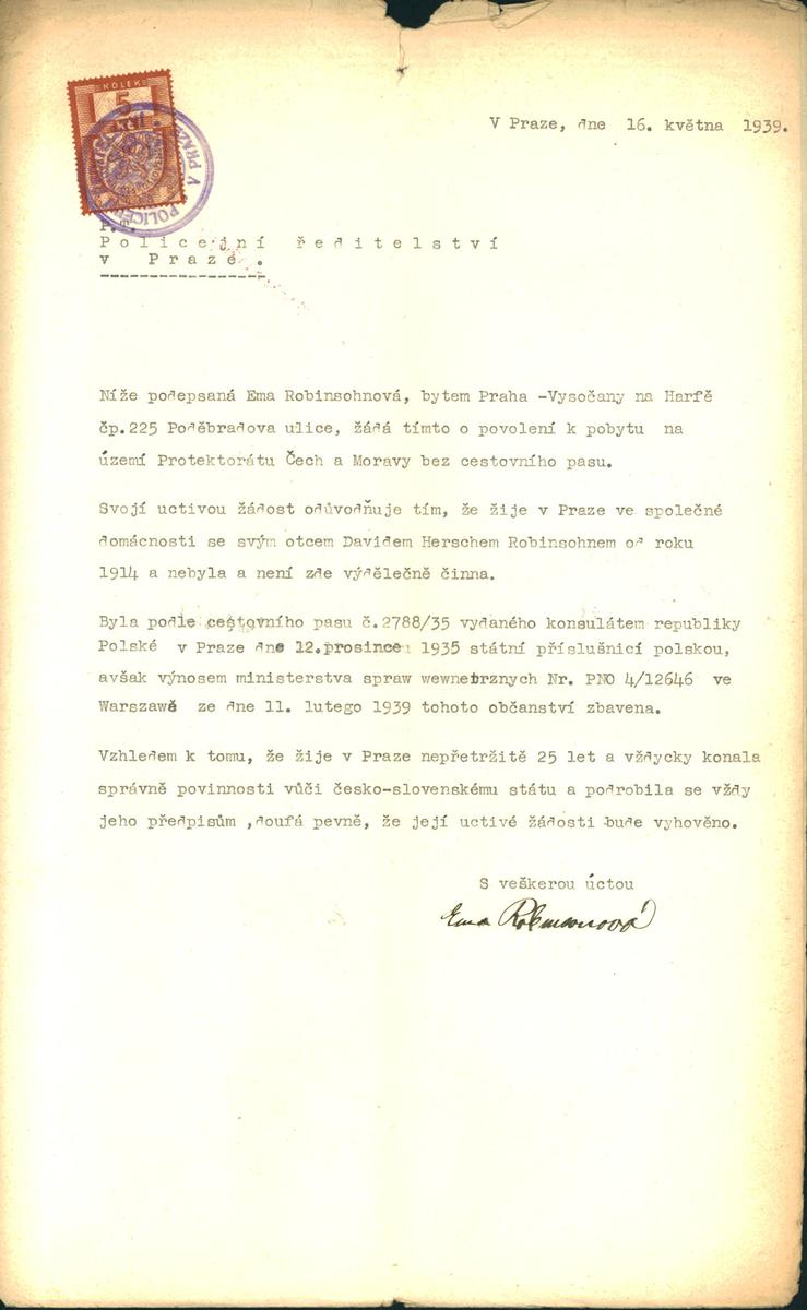 National archives Prague > Police Directorate Prague > 1941-1950 > R > Robinsohnová Ettel Emma