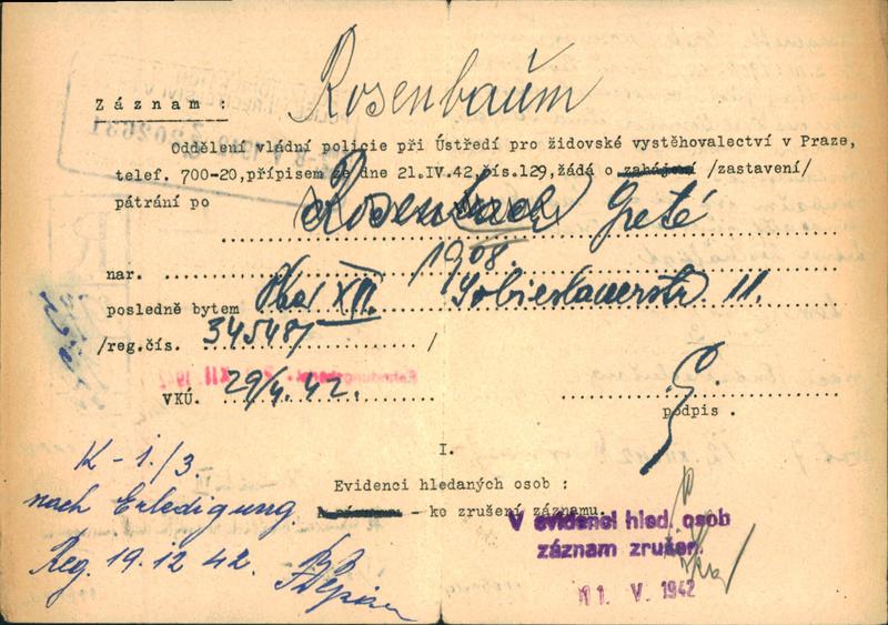 National archives Prague > Police Directorate Prague > 1941-1950 > R > Rosenbaumová Greta