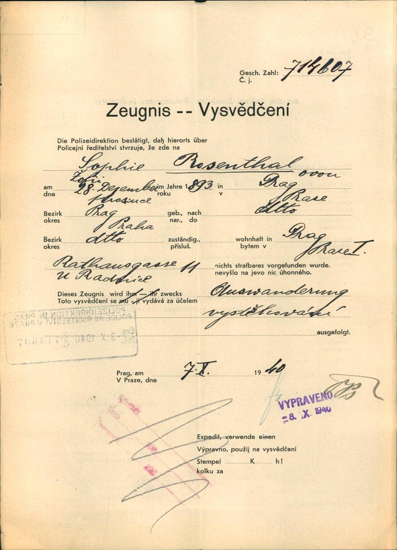 Rosenthalová Sofie: NEZPRACOVÁNO