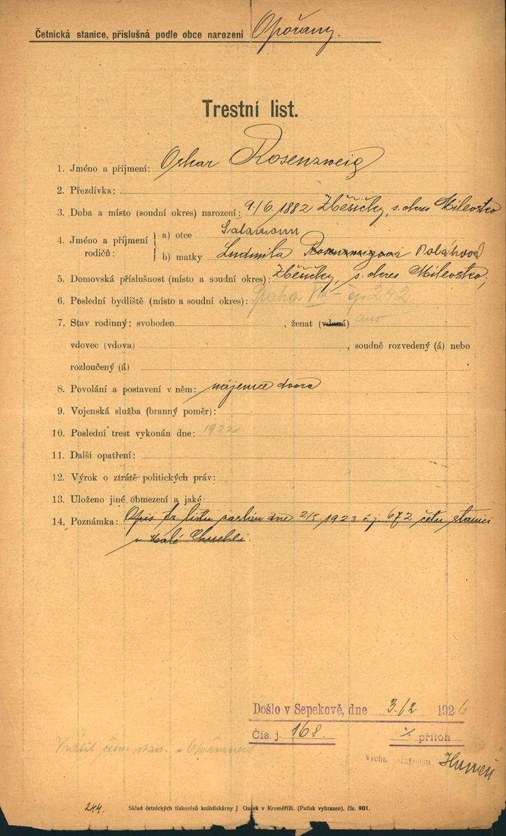 National archives Prague > Police Directorate Prague > 1941-1950 > R > Rosenzweig Oskar