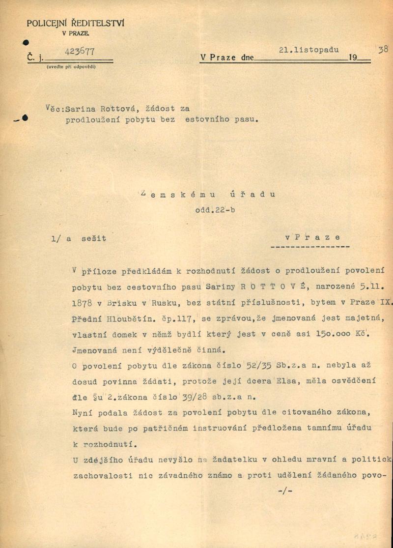 National archives Prague > Police Directorate Prague > 1941-1950 > R > Rothová Sarina