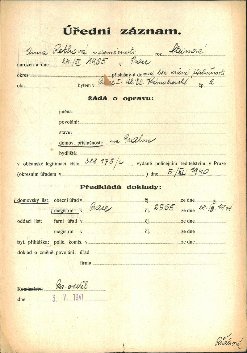 National archives Prague > Police Directorate Prague > 1941-1950 > R > Rothová Anna