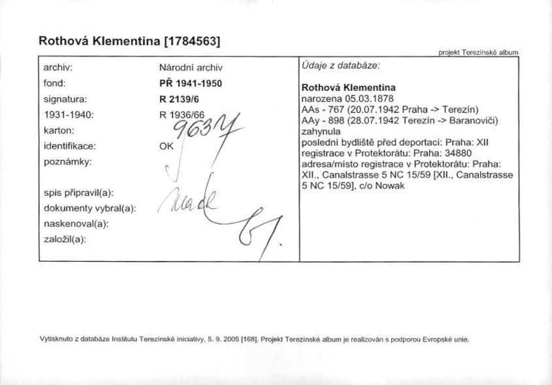 National archives Prague > Police Directorate Prague > 1941-1950 > R > Rothová Klementina