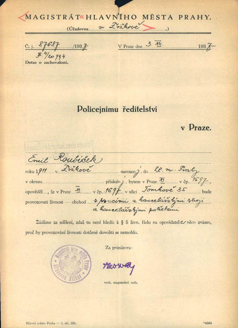 National archives Prague > Police Directorate Prague > 1941-1950 > R > Roubiček Emil