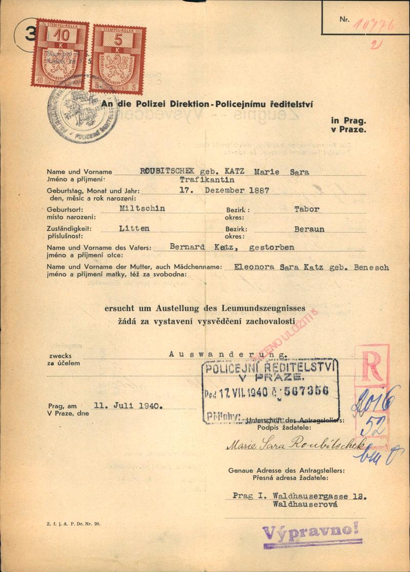 National archives Prague > Police Directorate Prague > 1941-1950 > R > Roubičková Marie