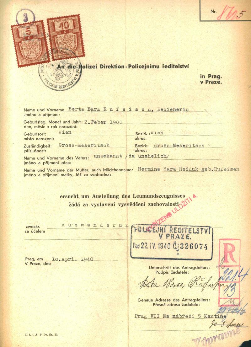 National archives Prague > Police Directorate Prague > 1941-1950 > R > Rufeisenová Berta