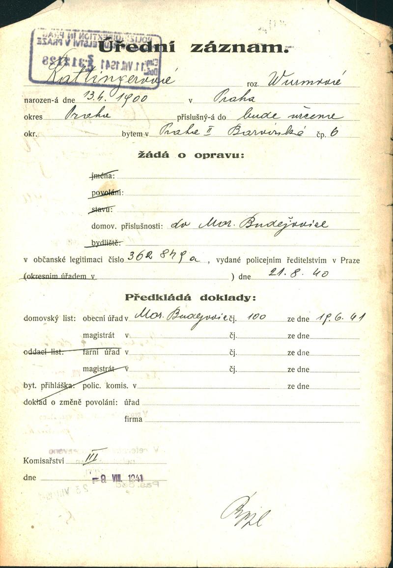 National archives Prague > Police Directorate Prague > 1941-1950 > R > Rattingerová Markéta
